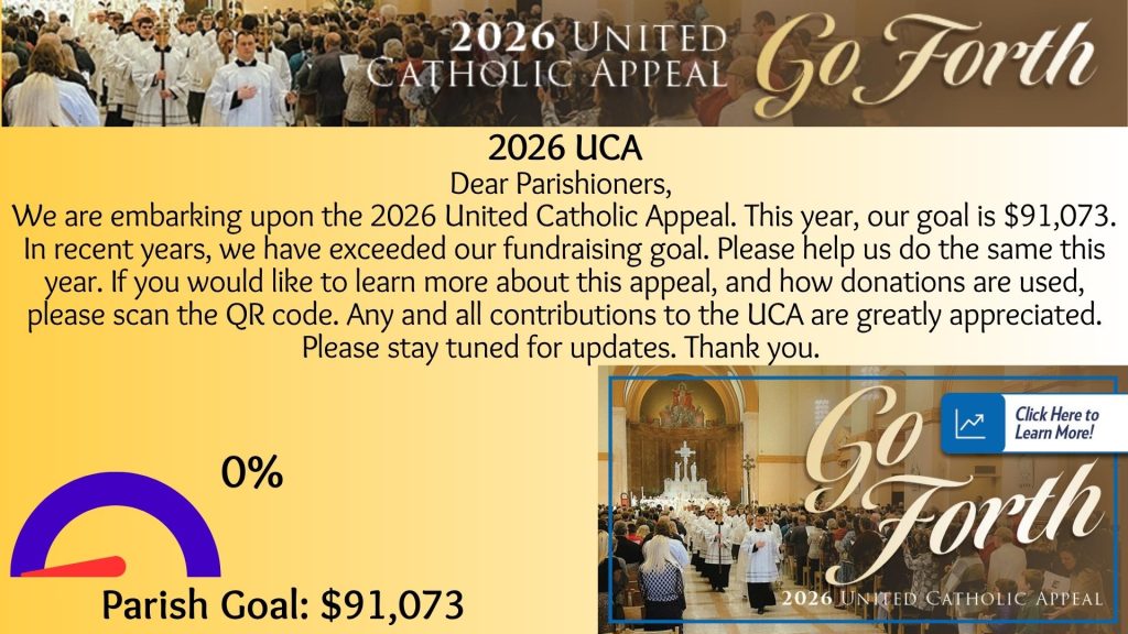 Dear Parishioners of St. Matthew Catholic Church, The United Catholic Appeal is upon us. Please watch the following video for a brief introduction to the appeal. There is a vast network of people helped by the UCA, and our actions make a direct impact on the degree of success of this appeal. Give to the United Catholic Appeal Share0 Related postsOctober 3, 2025Mass Schedule AnnouncementRead moreOctober 2, 2025Gala 2025Read moreSeptember 10, 2025Project Outdoor Nativity SceneRead more