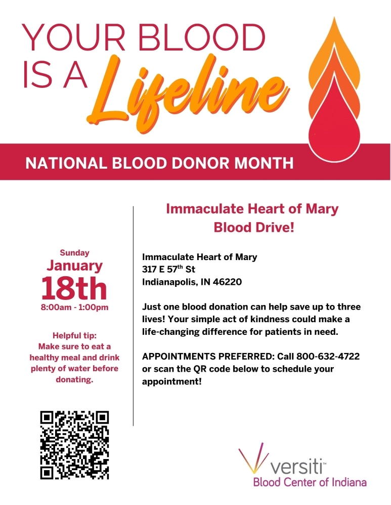 Register for the Blood Drive at IHM Here Share0 Related postsJanuary 7, 20262026 St. Matthew Men’s RetreatRead moreJanuary 7, 20262026 St. Matthew Women’s RetreatRead moreDecember 22, 2025ArchIndy Vox PodcastRead more