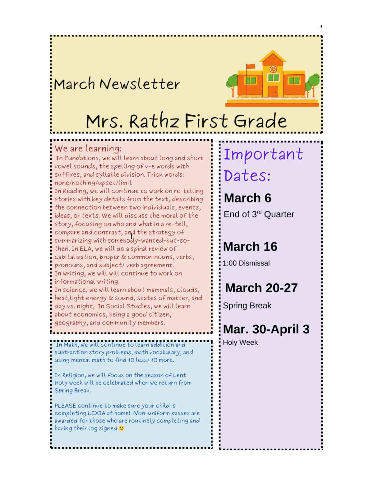 1st Grade News